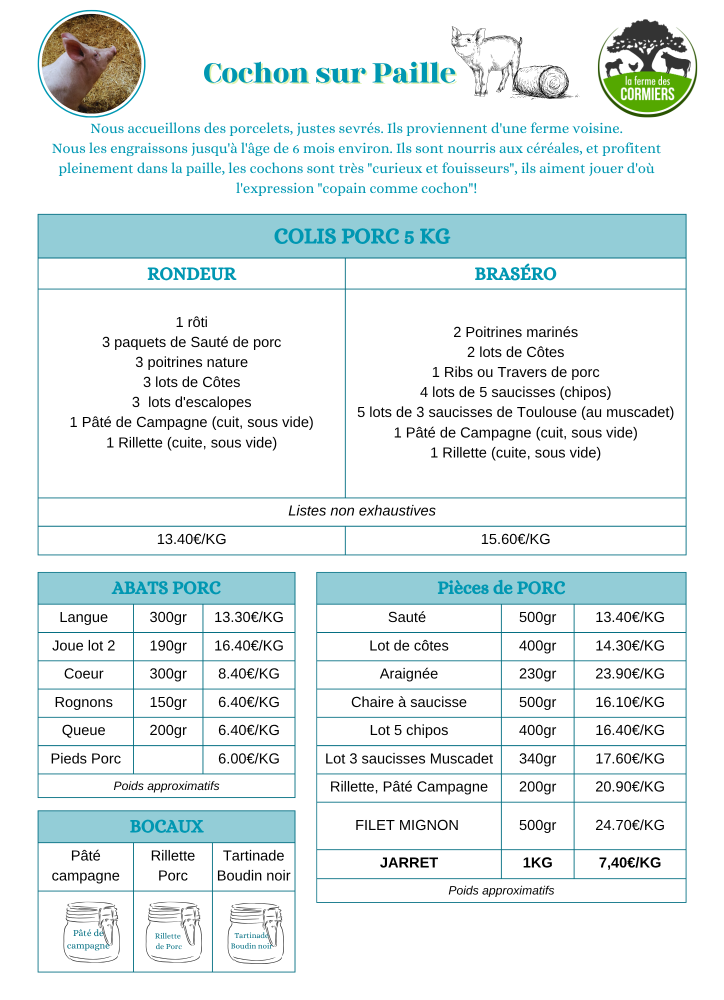 Nous les engraissons jusqu'à l'âge de 6 mois environ. Ils sont nourris aux céréales, et profitent pleinement dans la paille, les cochons sont très "curieux et fouisseurs", ils aiment jouer d'où l'expression "copain comme cochon"!